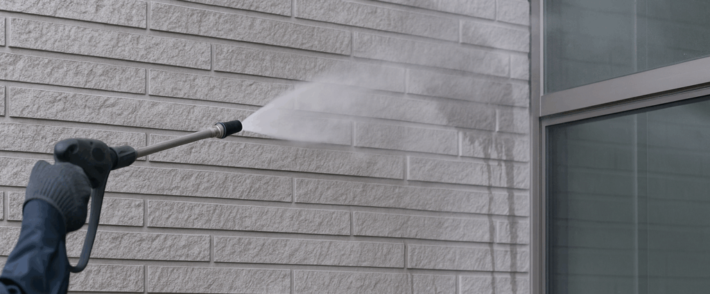 • 外壁専用洗剤+ブラシ洗浄→ 水垢・鉄サビ・雨だれなどを丁寧に除去